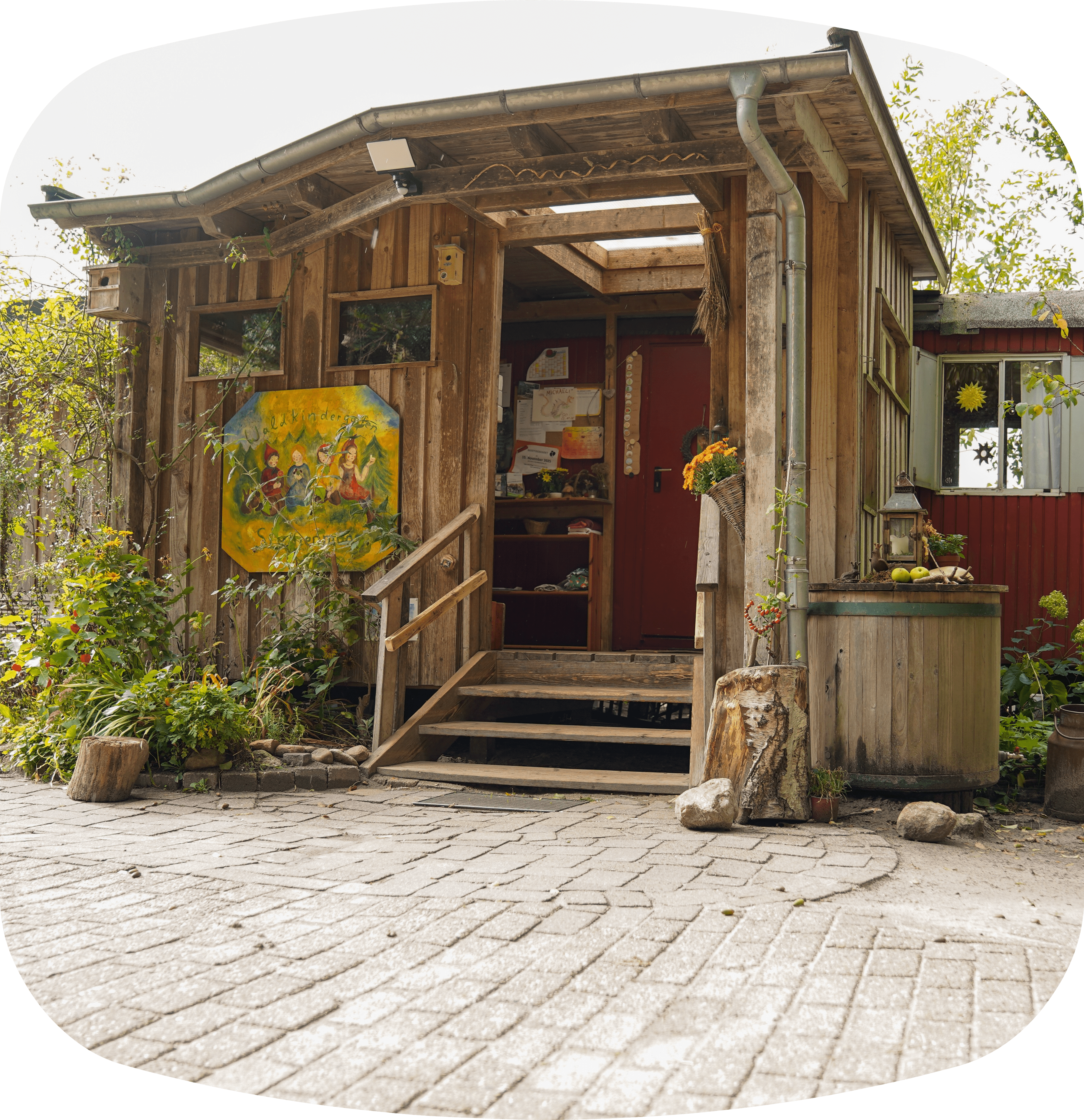 Unser Kindergarten verfügt zudem über einen Bauwagen als festen Rückzugs- und Lernort. Hier finden Kreativangebote, Geschichtenrunden oder Aufwärmphasen an kalten Tagen statt. Er bietet Geborgenheit, Struktur und einen vertrauten Rahmen im Wechsel mit dem freien Naturraum. Darüber hinaus steht den Kindern ein ergänzender Kindergartenbereich mit freien und überdachten Spiel- und Aufenthaltsmöglichkeiten zur Verfügung. So verbindet sich das Draußen-Sein im Wald harmonisch mit einem geschützten Raum für Ruhe, Konzentration und gemeinsames Gestalten.